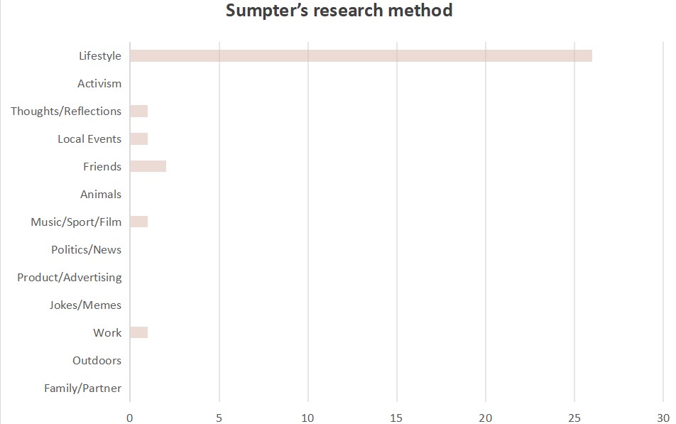 This webpage digged into how social media platforms, such as Facebook, interpret our personalities and preferences. We employed Sumpter's matrix, a blend of quantitative and qualitative methods, to investigate algorithmic identities online through an iterative approach. We were instructed to apply Sumpter's method by selecting 32 social media friends, categorizing their last 15 posts based on a predefined list of categories, and then creating 2D graphs by plotting some of these categories against each other.